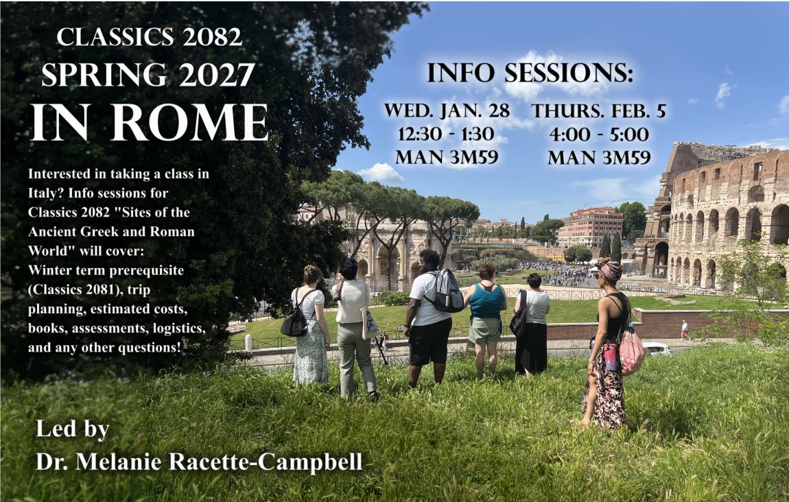 Interested in taking a class in Italy? Info sessions for CLAS-2082: Sites of the Ancient Greek and Roman World will cover: