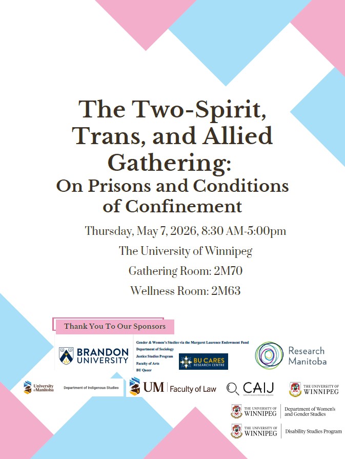 The Two-Spirit, Trans, and Allied Gathering: On Prisons and Conditions of Confinement is a free, public event that is taking place on May 7 at the University of Winnipeg. The gathering is intended as an educational forum and a space to build relationships.