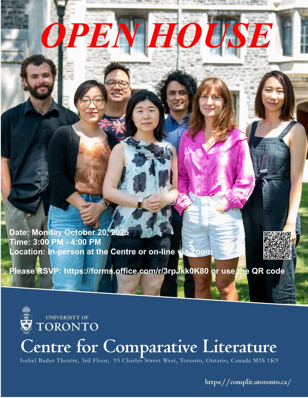 The Open House is a hybrid event with the option of zoom attendance. It is to take place in the seminar room of the Centre located on the 3rd Floor, 93 Charles Street West (Entrance to the Centre is at the back of the Isabel Bader Theatre). To register for the event, please go to https://forms.office.com/r/3rpJkk0K80. It would be great if you can submit your response by Oct 10, 2025. If you plan to join via zoom, once you have registered, you'll receive the zoom link and the passcode for the event.